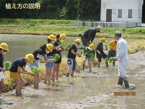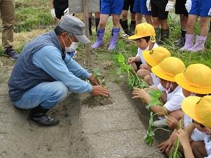 子ども達は一本ずつ苗を手に持ち、林さんに教えてもらいながら、がんばって植えました。