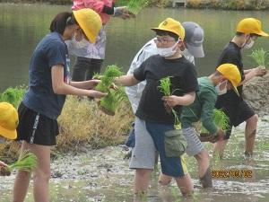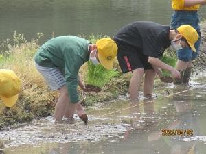 昼 5年生 米づくり「田植え体験」をしました