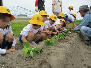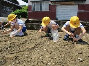 5月26日に1,2年生はサツマイモの苗を植えました。