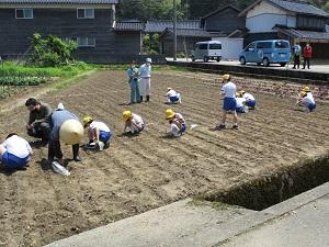 5月23日、今年の味噌づくりの第一歩!瀬戸町の畑で大豆を植えました。