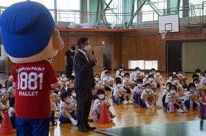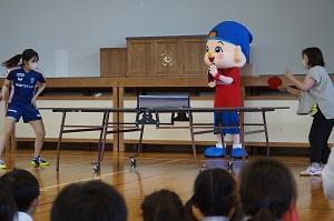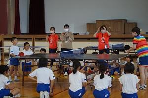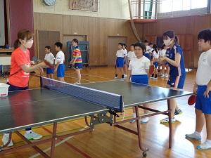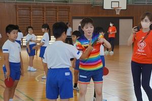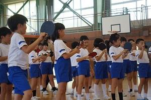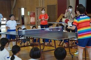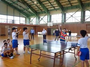 美術・図工 卓球チーム日本ペイントマレッツによる卓球台贈呈式と卓球教室