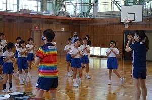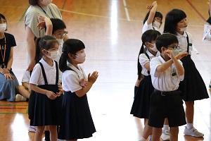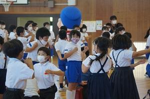 校長先生や藤井先生が選手に挑戦のコーナーでは、みんなで声援を送りました。