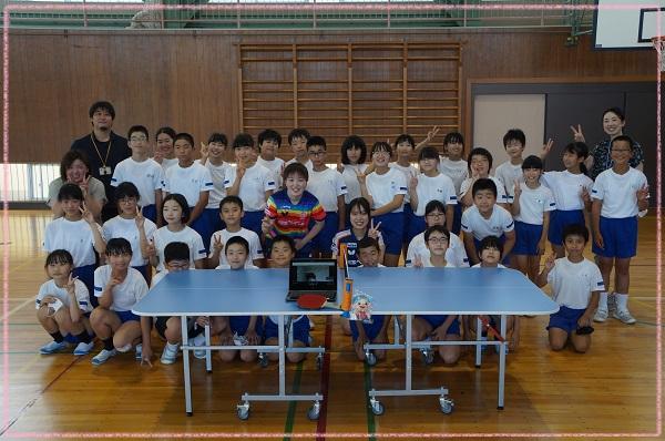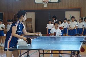 7月7日はTリーグで活躍中の日本ペイントマレッツの芝田選手と打浪アンバサダー、関係者の皆さんがはるばる大阪から来校しました。