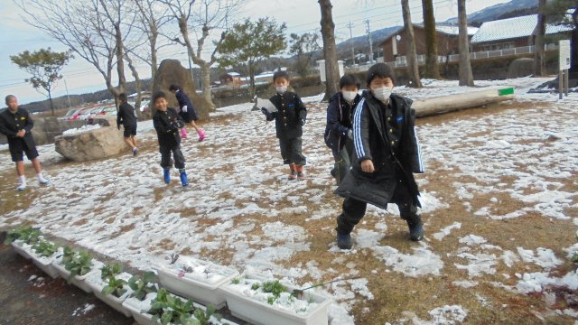 今週は、大海小周辺だけ?雪が積もりました。貴重な雪や氷を求めて子ども達は走り回って遊ぶことができました。来週も雪が欲しいところです。