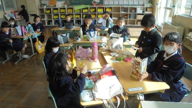 2年生の教室では、学習のまとめとして・・・・が仕上がったようです。見やすいように開いて立ててあります。友だち同士見合っています。早く家に持って帰り、見せてあげたいようです。