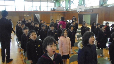 どうですか!この口の開け方。卒業式練習の一コマです。大きな声で歌を歌っています。体いっぱい使って歌っています。16日の卒業式が楽しみです。