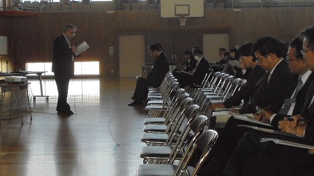 さて、校長が熱弁しています。何の話をしているのでしょうね。