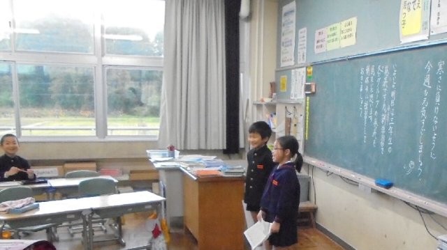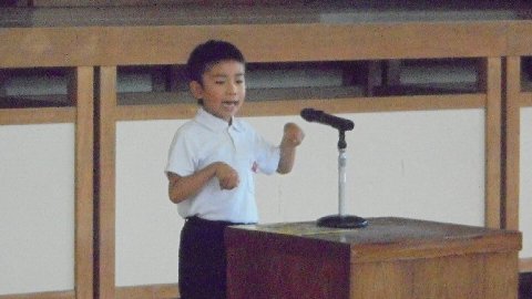 校長の話はちょっと難しかったかな・・・「孔子と思いやり」の話。そのあと生活目標の話では、いつものとおりたくさんの子が発表しました。