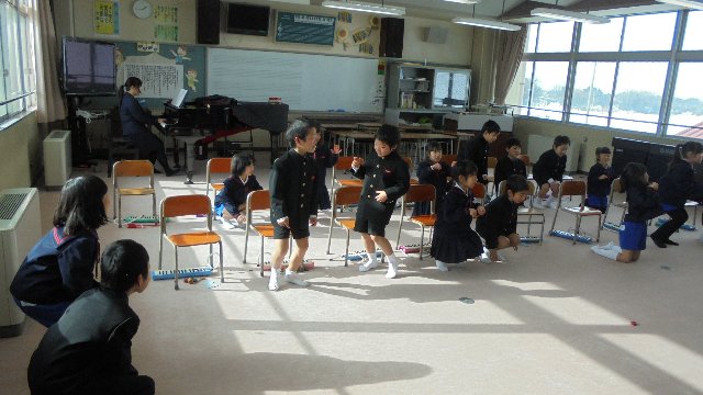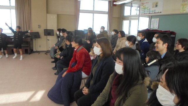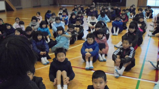 こども園の年長さんが1・2年生に招待されて学校へやってきました。ダンスやゲーム、精一杯のもてなしを受けて楽しそうでした。しばらく見ないうちにみんな大きくなっていましたよ。冬が終われば大海小に入学です。