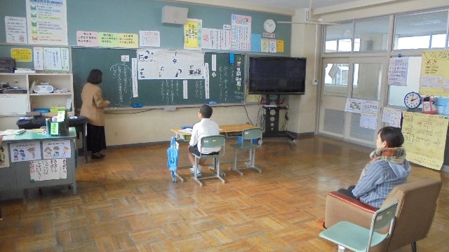 ・テレビにはコンピュータの映像が提示され、ICTを活用している・・・・・