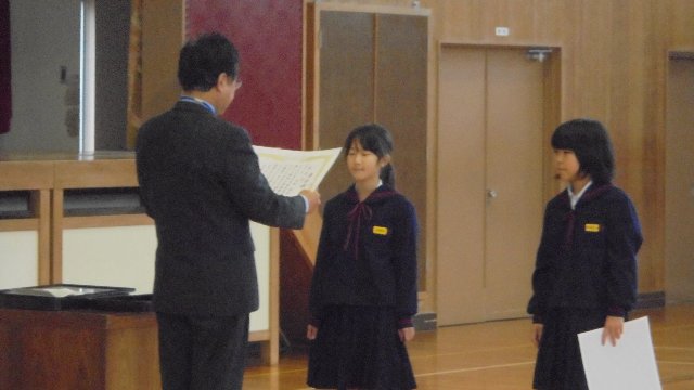 今年の大海小の代表は、6年生の出村さんです。当日清水育英会理事長城村さんが表彰伝達に来て下さいました。出村さんの立派な行い、他の範となる善行に拍手です。大海小学校の児童みんなも負けないくらい立派です。本当に学校代表です。