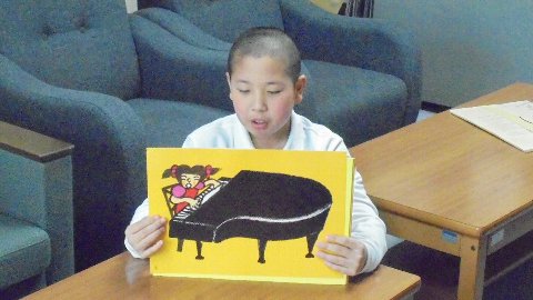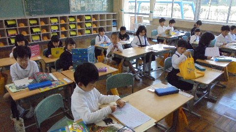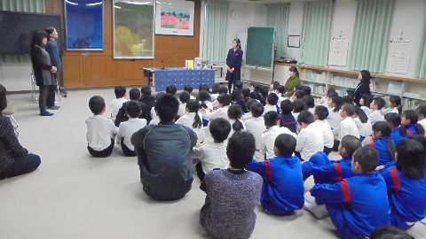 月一のお楽しみ、誰がやってくるかわからないゲリラお話会?です。1年生の教室をのぞくと教頭先生が楽しい手遊びを取り入れた活動をしていました。どんな本だったのかな。2年生は校長先生でした。これは、家へ帰ってお話しすることになっています。2年生いつも話し手の方をきちんと向いて目で話を聞けていますね。感心させられます。