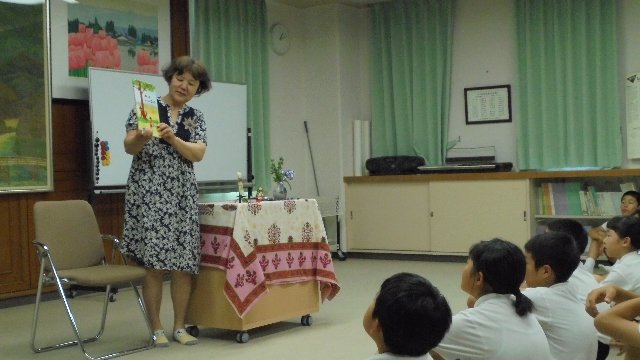 いつものように「やまんば」お話会グループのみなさんがおいで下さいました。ウォーミングアップの手遊びは6年生でも楽しいです。来週は担任の他の先生方によるお話会が予定されています。夏休みたくさんの本を読んで下さいね。