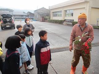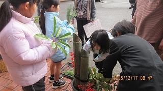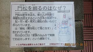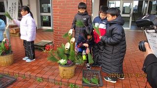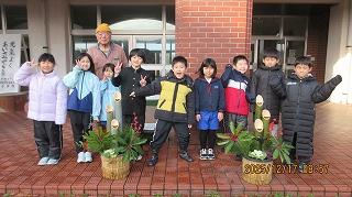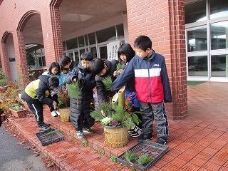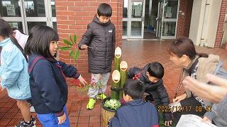 1限目に道原さんと一緒に門松づくりをしました。最初に門松の意味を教えていただき、その後、大海小学校のみんなのところに「福が来ますように」と願いを込めながら作りました。できあがった門松を玄関前に置くと、お正月が近づいてきたことを感じました。道原さん、毎年ご指導ありがとうございます。