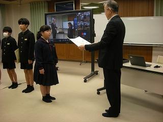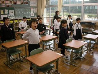 1限目に12月の全校集会を行いました。インフルエンザ感染拡大防止のため、オンラインで行いました。まずは、各種コンクール等の優秀作品の表彰を行いました。今月も立派な成績を収めた子が何人もいました。続いて校長先生からチャレンジの大切さ、つながりをもつことの大切さについてのお話がありました。その後、金松先生からインフルエンザ予防で気をつけることのお話がありました。そして、各学級の11月の生活目標のふり返り、助實先生からの今月の生活目標「人の役に立つことをしよう」のお話がありました。