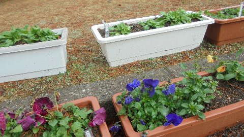 雪が降る前にと思い、子ども達が登校している学期中にいくつかのプランターを玄関にセットしました。葉ボタンがとてもきれいです。他のものは休業中で子どもたちが休みなのであわてません。十分日の当たるところでぎりぎりまで育てます。アドバイザーの助言通り。