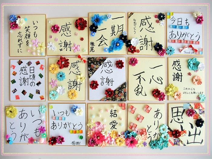 思い思いの言葉を記して、そこに好きな飾りをグルーガンで張り付けました。