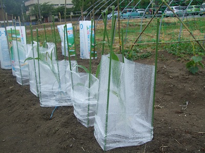 きゅうりのネットや野菜に風よけをしてくださいました。
