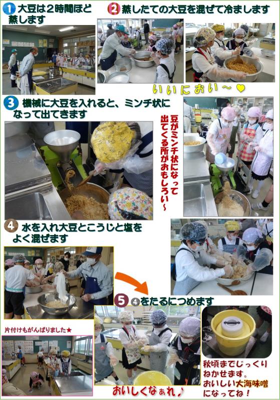 大海小では3年生が、伝統の大海味噌づくりをします。
