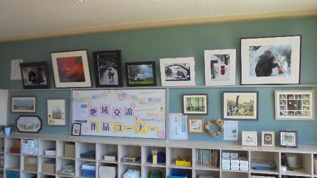 3階の児童会室壁面を利用した地域交流コーナーに新しい作品を加えました。