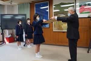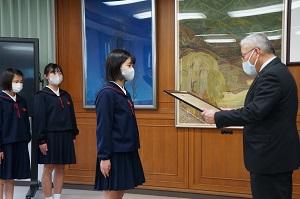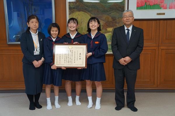 3月24日、6年間はっぴ~貯金に真剣に取り組んだ上位3名の卒業生が代表して市の教育部長から表彰状を受け取りました。(例年なら東京で表彰式が行われるすごい賞です。)