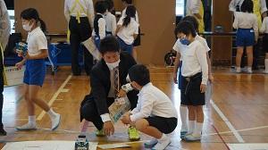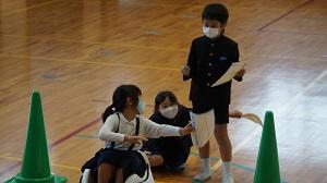 校長先生や藤井先生が選手に挑戦のコーナーでは、みんなで声援を送りました。
