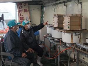 朝早くから、髙﨑武義さん、高崎政勝さんご兄弟がていねいに蒸してくださったので