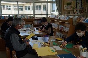 休み時間に6年生と一緒に手作りの色紙づくりをしました。