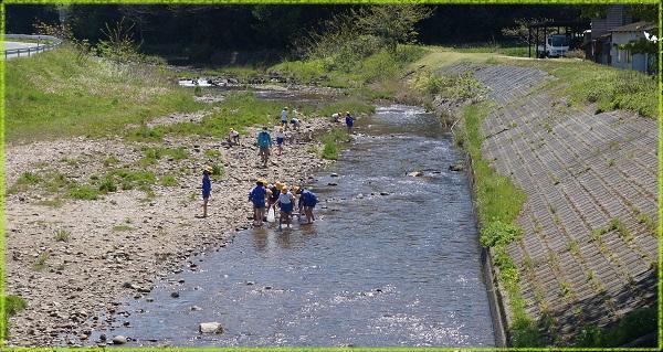 4年生は4月23日(金)に大海川で鮎の稚魚の放流をしました。