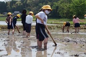 5年生米づくり「しろかき」体験をしました