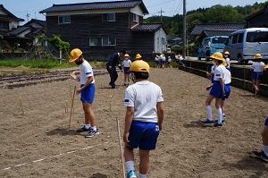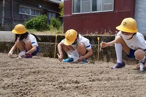 自分の担当を丁寧に植えていった3年生・・・まっすぐ植えられたかは、芽が出てからのお楽しみです