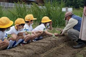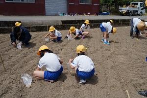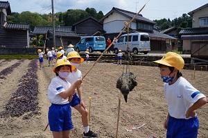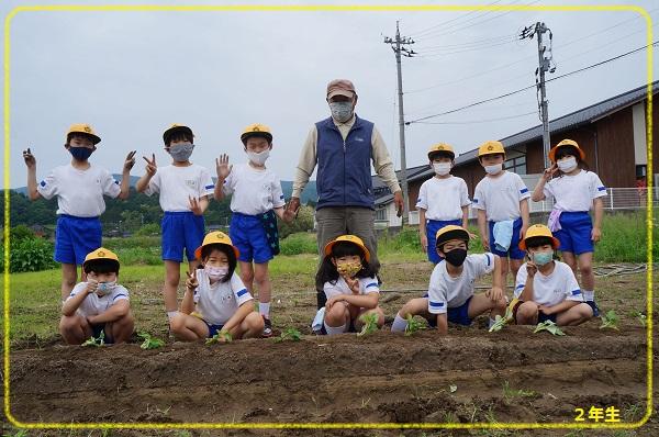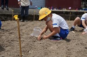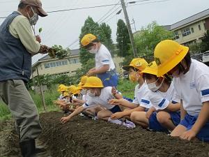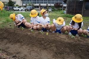 5月26日に1,2年生はサツマイモの苗を植えました。