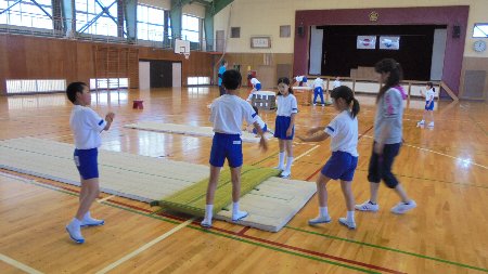 先週から4年生が、鉄棒運動、跳び箱運動、マット運動の練習をしています。授業時間や放課後に練習しています。できない技やむずかしい技ができるようにがんばっています。30日には校内発表、来月の1日には、宇ノ気小学校で市内6小学校の4年生が集まり、交歓会が行われます。励まし、応援よろしくお願いします。