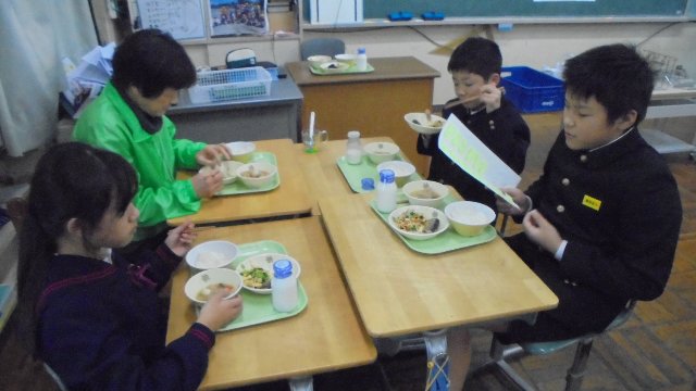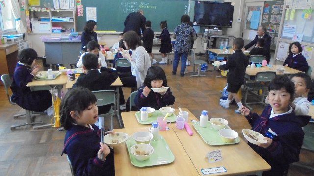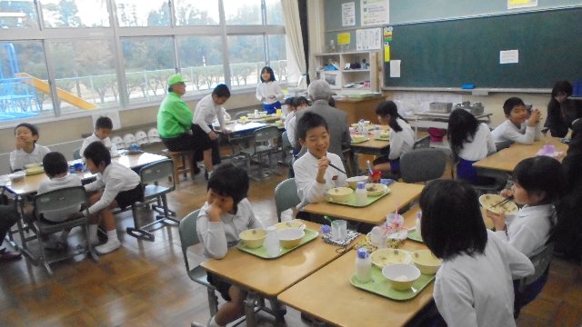 各教室でいつもお世話になっている地域の皆さんを囲んで給食です。久しぶりにお目にかかる人もいて、懐かしそうでした。