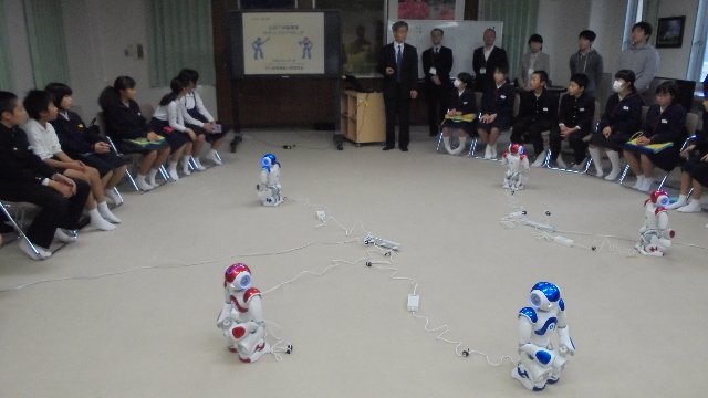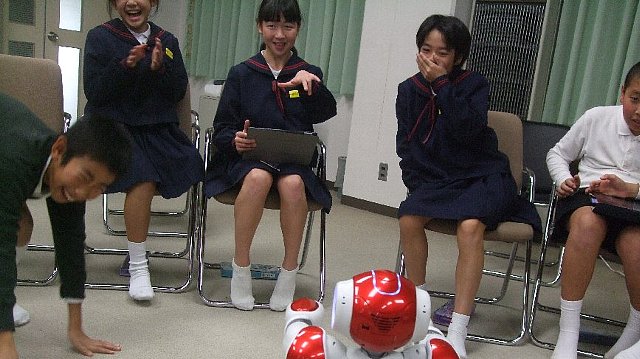 タブレットでプログラミングすると自在にロボットが動きます。3人で協力して動きをプログラミングします。話したり踊ったり、こんなこともできるんだと驚かされてばかりでした。