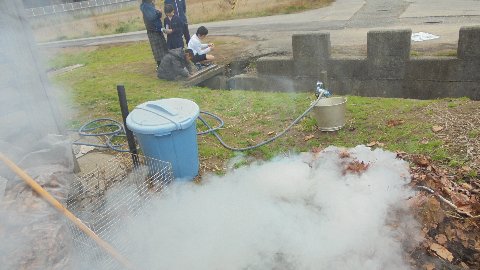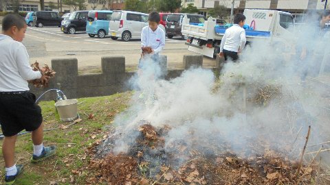 収穫したサツマイモを焼きました。これまで長きにわたり玄関掃除で集めた落ち葉を燃やしました。雨模様だったのでちょうど良い火の具合と思って油断していたら・・・大焦げでした(笑)