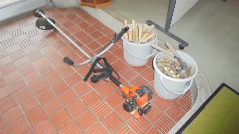 校地の草を管理公社の皆さんに刈り取ってもらっています。夏休み奉仕作業はグランドの草がターゲットでしたが、今回はフェンスまわりの草むらを・・・蛇のすみかが無くなって安心、子どもたちの大好きなバッタのすみかも・・・大変です。(笑)
