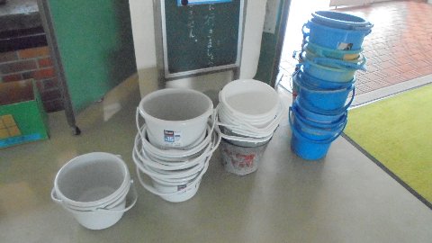 先ほど、上記のメールを発信しました。ご理解のほどよろしくお願いします。プールをのぞくと昨日早速むしってくれた草がバケツいっぱいに・・・監視の保護者の方も参加して下さいました。日曜日の親子奉仕作業もよろしくお願いします。晴れて、涼しいといいですね。