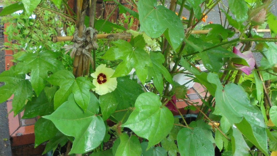 春から育てていた綿の枝に花がつきました。写真のように派手さはありませんが落ち着いた花です。これからどんどん咲きそうです。子どもたちの2学期登校に間に合いそうです。