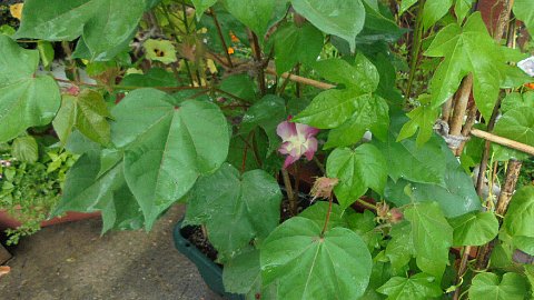 綿の花が咲きました。花なのでしょうか、それとも実かな。