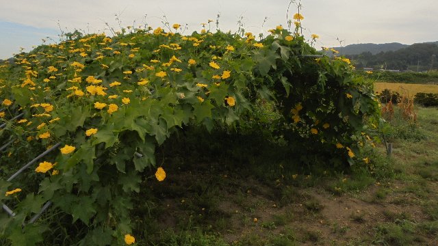 ひまわり畑に続き、ヘチマドームも見応えがありますよ。見たい方はお急ぎを!今週中なら・・・