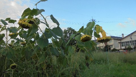 キンモクセイが満開、いい香りです。(以前紹介したのはギンモクセイだったようです。)かたやウサギ小屋の裏では季節外れのアサガオが満開、種が落ちてこんなに大きく。誰にも気づかれなかったので支柱もなしです。しかし、立派ですね。ここ2.3日暑かったからかな?