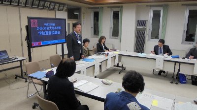 今晩、初めての「大海小学校の学校運営協議会」が開かれました。市教育委員会より委嘱状が交付され、コミニュティ・スクール(略してコミスク)の内容が説明され、会長には山下篤志さん(市子ども会協議会副会長)が選ばれ、会は進行しました。