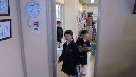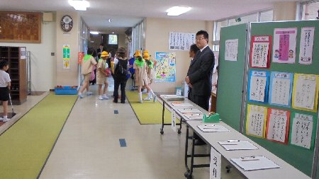 今1年生が学校中の職員と親しくなるために、名前の記入用紙を持って職員室にやってきています。校長室にも・・・礼儀正しくあいさつや用件をきちんというのも大切な学習です。