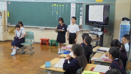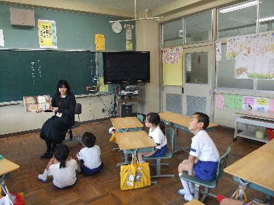 月に一度、朝学習に担任でない先生が登場して読み聞かせをします。これからも毎月1年間続きます。次はどの先生がやってくるか楽しみにしているようです。