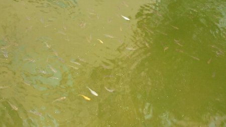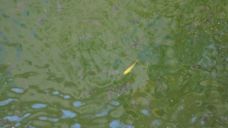 大海小学校には、メダカ池があります。そこには、いろいろな種類のメダカがたくさん住んでいます。中にはめずらしい白いメダカもいます。5年生の理科でメダカの誕生の学習をします。もうすでにたまごを腹につけているメダカも見られます。学習が終わると、誕生した子めだかが放流されて、また仲間が増えていきます。たまにのぞいてはいかがでしょうか、めだかの学校を。 写真には、「ヒメダカ」が目立っていますが、よーく見ると20匹以上の黒めだかなどが写っています。わかるでしょうか。
