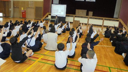 ちょっと遅れましたが、今日の昼休みに5月の学校集会を行いました。久しぶりに体育館で全員が集まりました。みんな元気で、とても立派な集会でした。5分も前に静かに集まることができ、司会の上野先生から「すばらしい!」とほめられてスタートしました。校長からは、「みんな仲良く」「自分から進んで」「みんなと力を合わせ」「交通事故」に気をつけて・・・たくさんの話を聞きました。