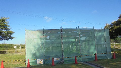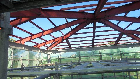 老朽化した屋根が取り払われ、新しい屋根の鉄骨が組まれています。できあがりが楽しみです。今年の相撲大会は7月28日土曜日です。そのときにお披露目ですね。