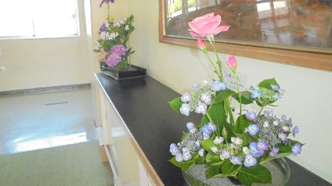 今日も生け花ボランティアの細川さんが花を生けに来校して下さいました。毎週毎週ありがとうございました。次回は9月にスタートして下さいます。