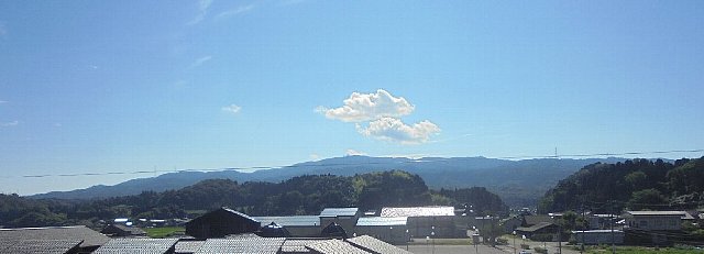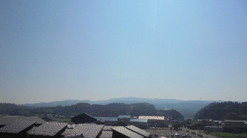 朝、宝達山の写真を写すと太陽が入り込みます。この写真には写っていません。子どもたちが登校した頃には遙か遠く高度を上げてギラギラと照りつけています。これが12月の写真だと山際に写るんですけどね。